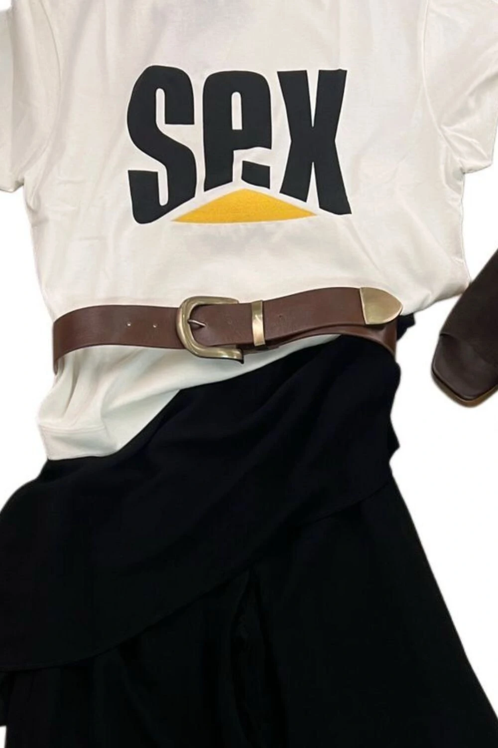 Cinto assimétrico couro tachas
