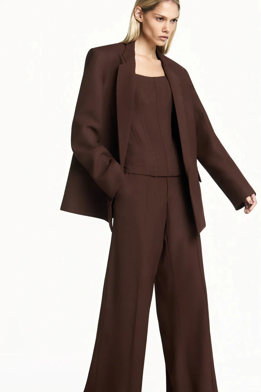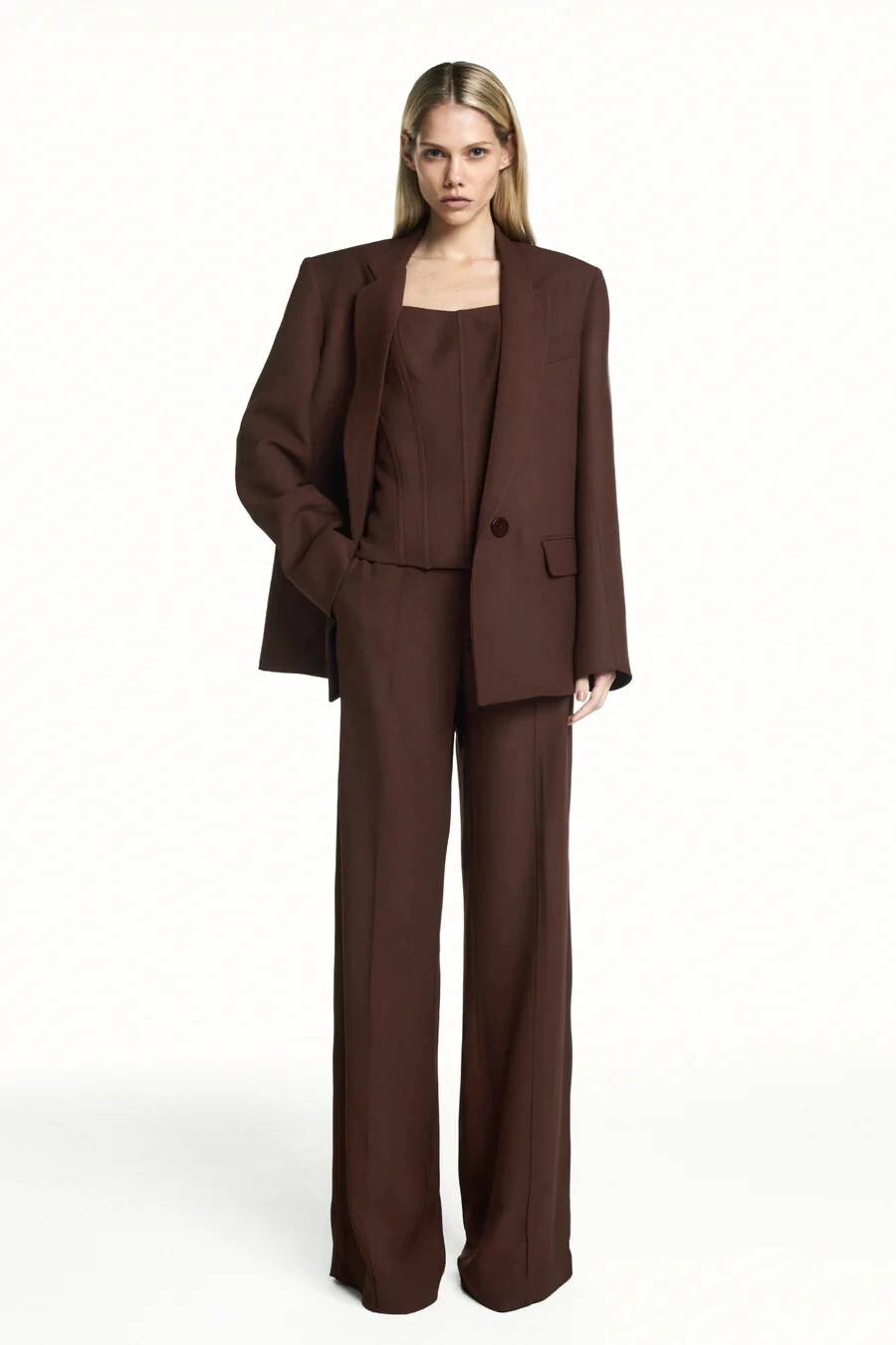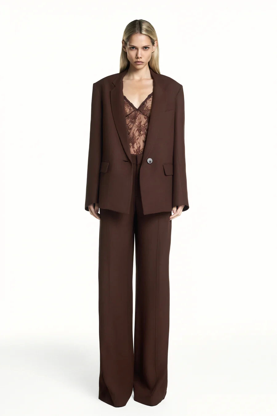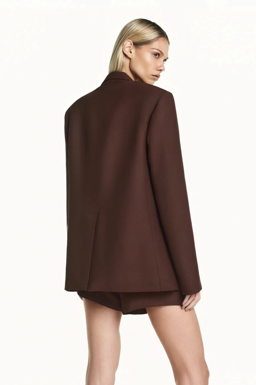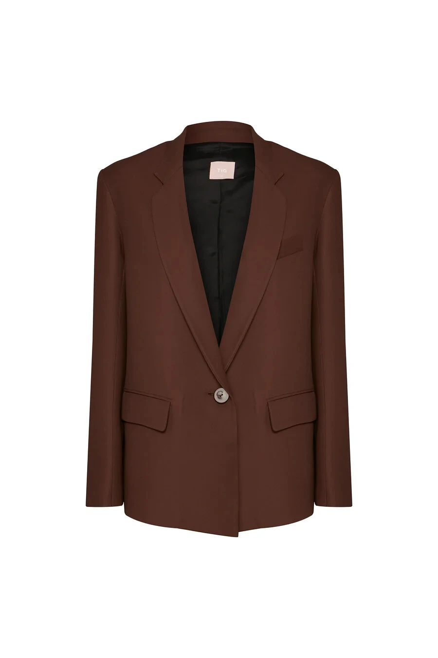 Blazer em tecido encorpado com toque de crepe, forro embutido e modelagem solta. Bolso embutido com lapela. Possui manga comprida, ombreiras e fechamento por abotoamento