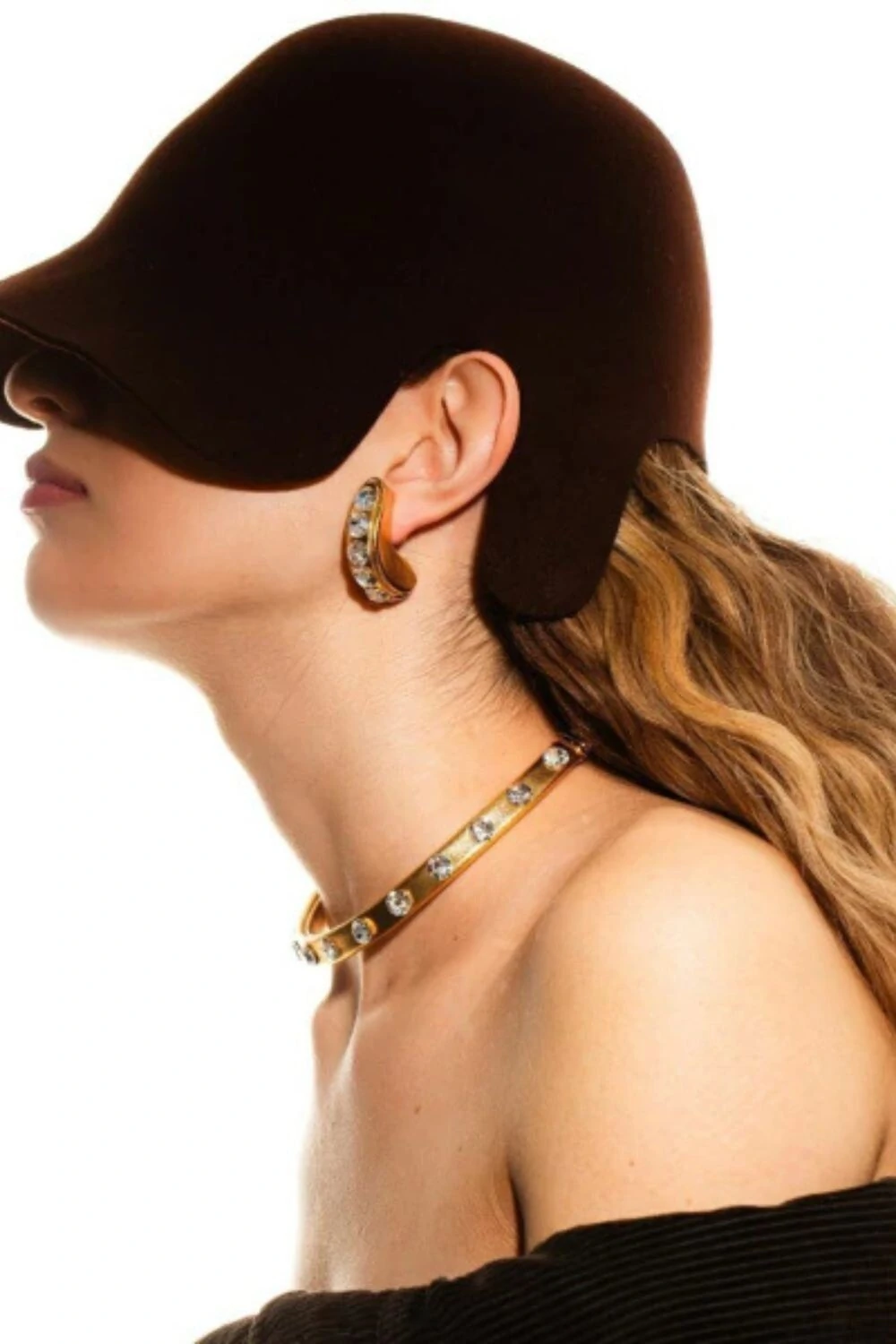 O Brinco Sela traz em suas linhas a referência sutil das formas comumente utilizadas nas selas dos cavalos, nesta releitura a forma curva e orgânica abraça a orelha e se projeta para frente dando evidência aos strass que trazem brilho e realçam ainda mais a beleza desta peça.