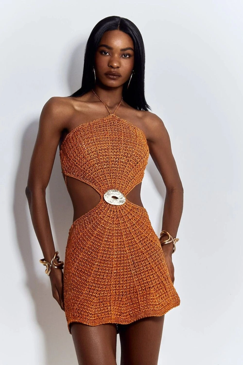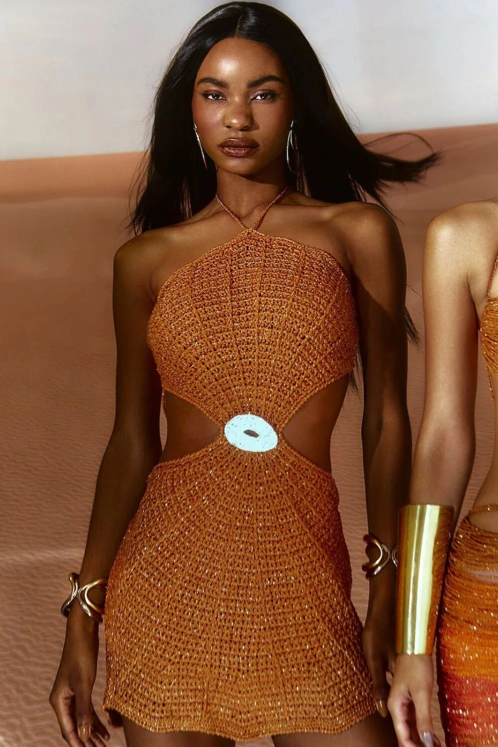 O lindíssimo Vestido Sinai da Skyline Collection - Limited Edition, possui design em formato de concha, com modelagem frente única e costas nuas, com detalhe de ferragens em ouro em formato assimétrico, possui amarração nas costas que trazem conforto ao usar o vestido.