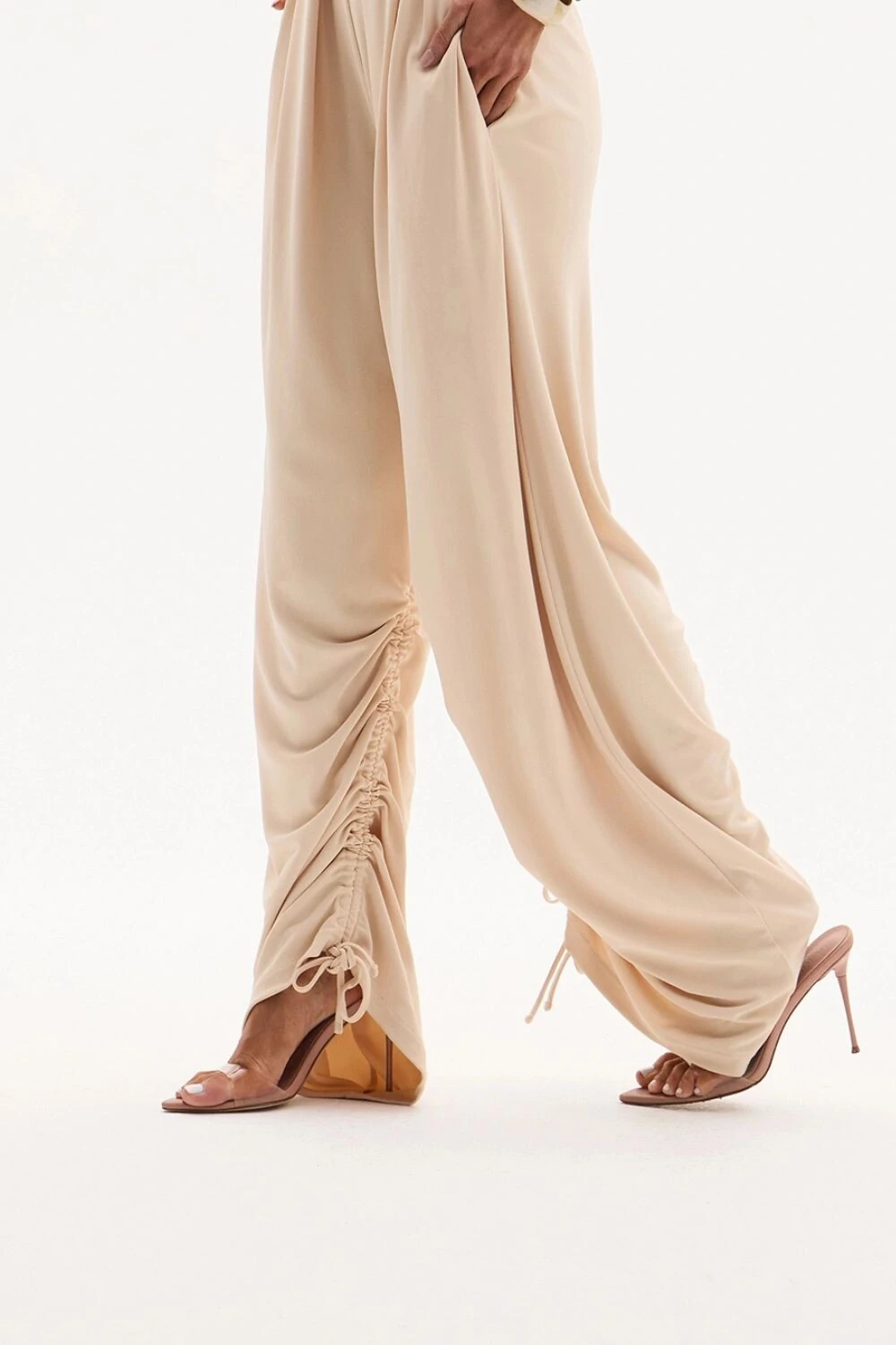 Design: Modelagem balloon ampla, que cria volume com movimento natural, proporcionando uma silhueta moderna e confortável, com visual alongado.