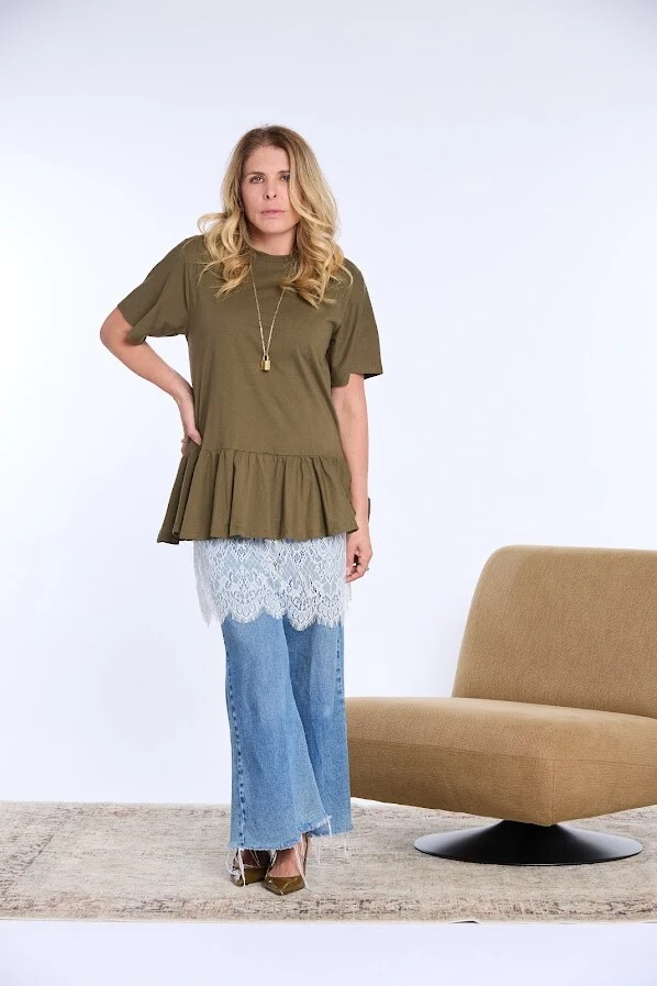 Blusa Malha Ampla Manga 3/4 Botik Verde Uni