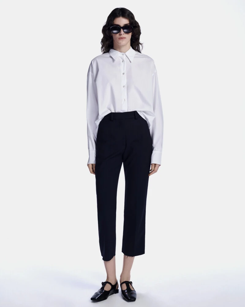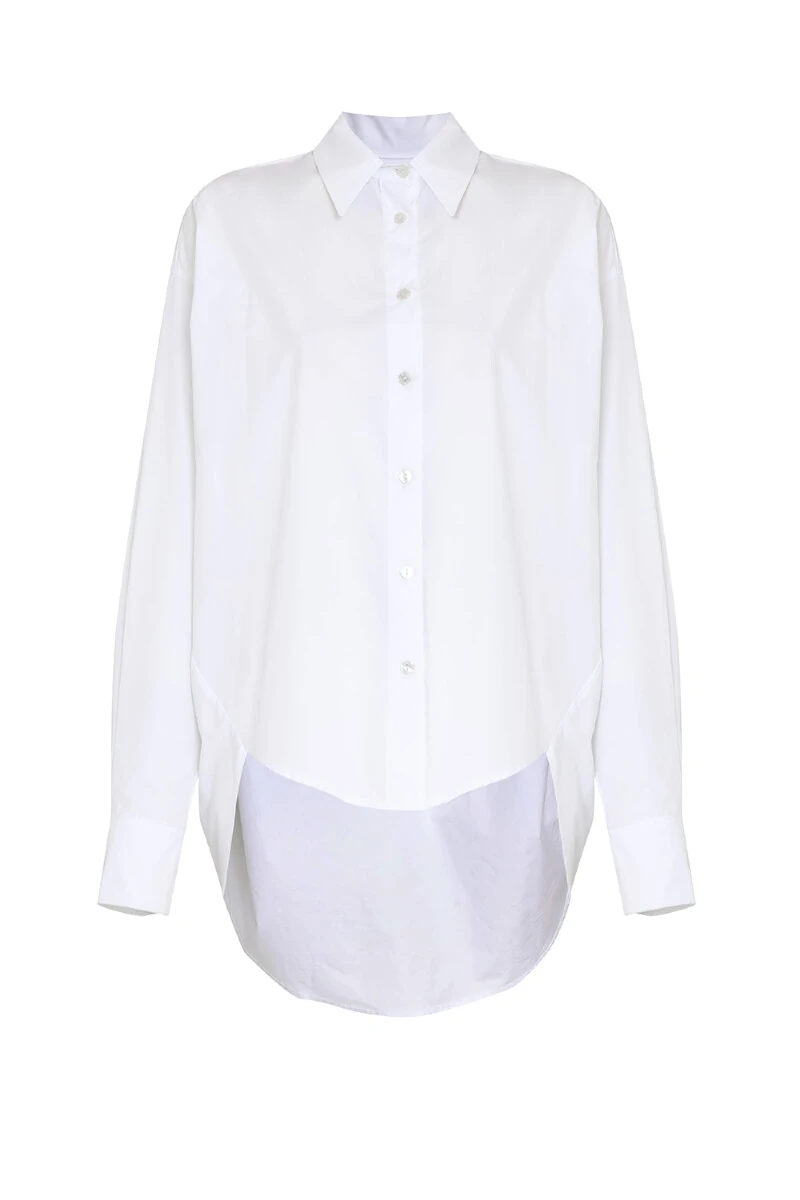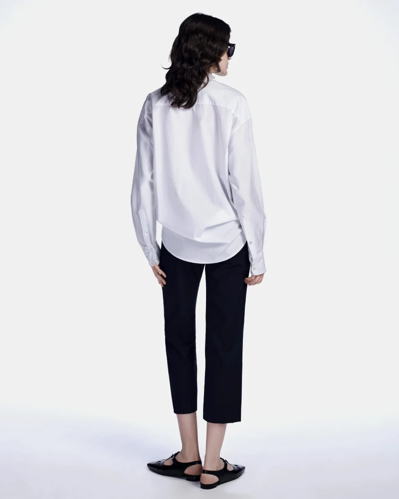 Camisa de Tricoline com Modelagem Oversized, Pala Nas Costas, Vista e Punho com Botões Personalizados Ab e Detalhe de Pregas Nas Mangas.
