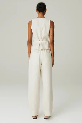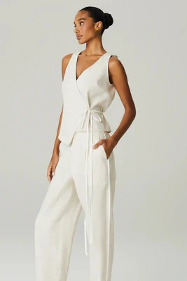REGATA DE LINHO COM MODELAGEM PAREÔ COM AMARRAÇÃO BICOLOR NO FECHAMENTO