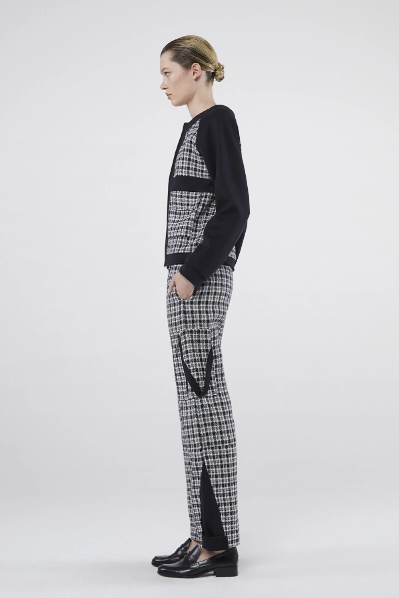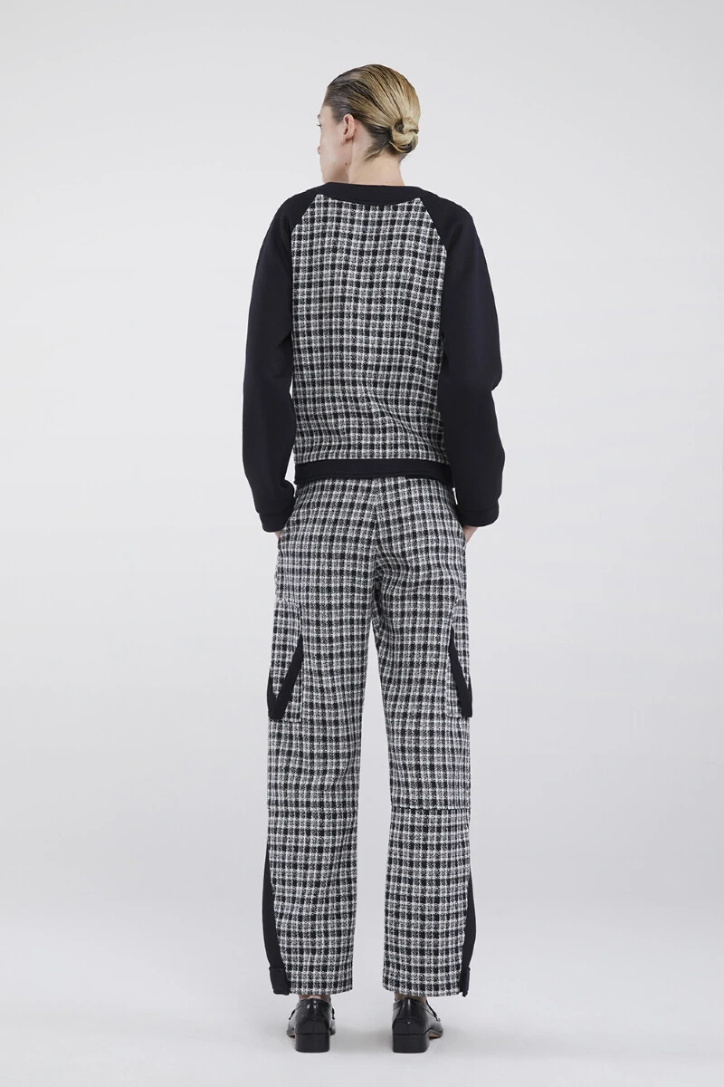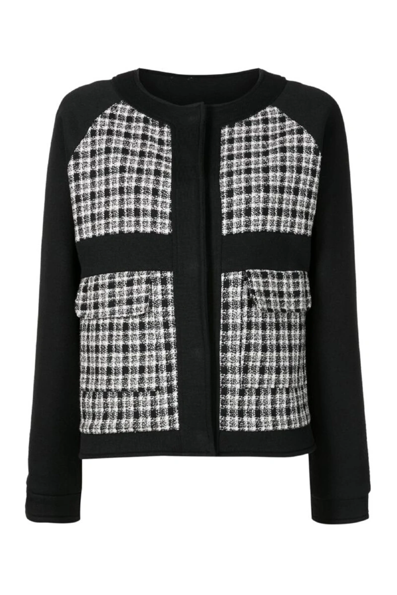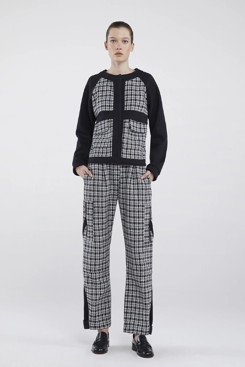 Casaco em Moletom com Detalhe em Tweed Xadrez Fechamento com Botão de Pressão Interno