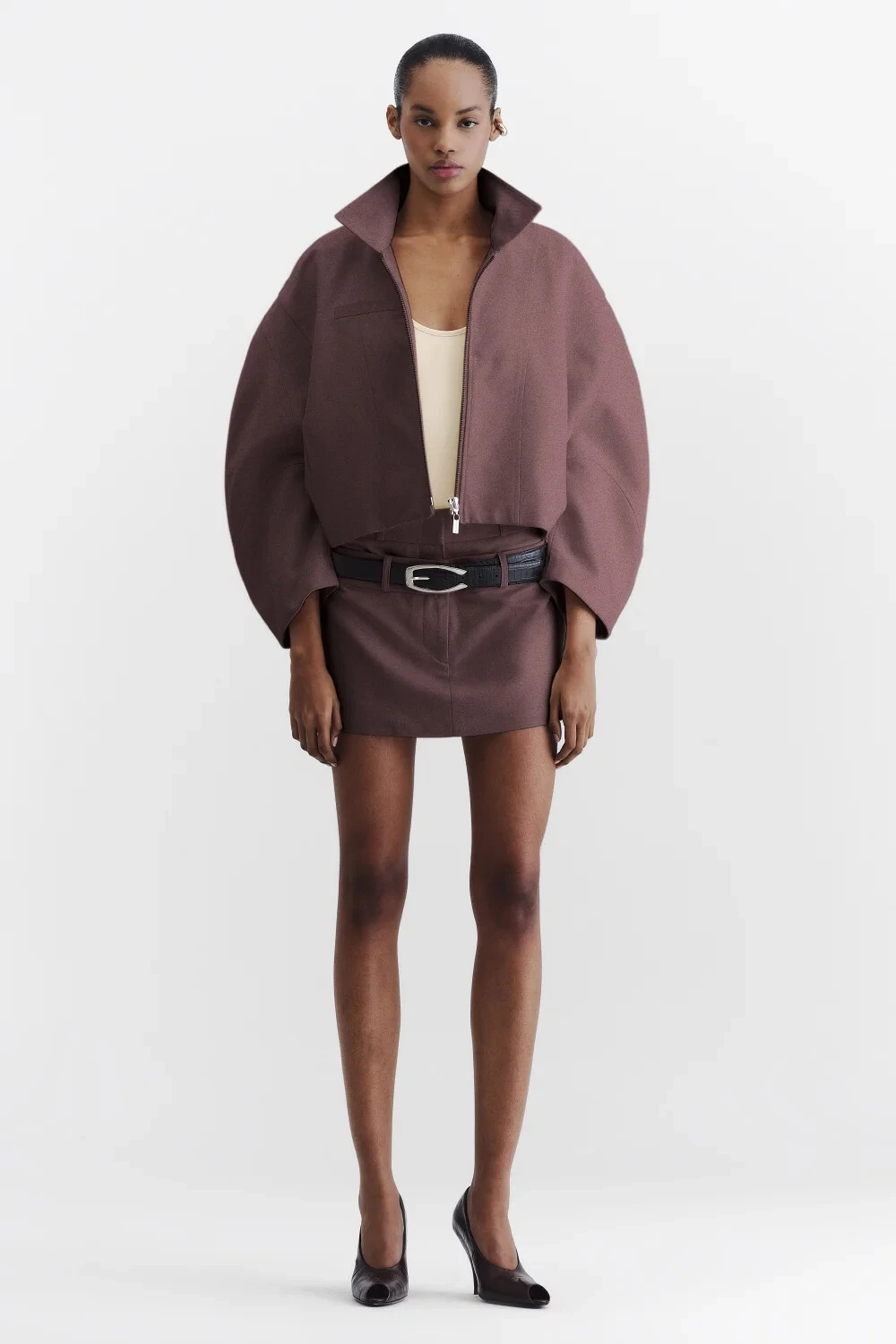 Jaqueta estruturada, com recortes que valorizam a silhueta e gola alta para um toque moderno. Zíper personalizado frontal que dá todo um charme para o look. Ideal para compor conjuntos urbanos ou sobreposições sofisticadas. Peça-chave para um visual de impacto.